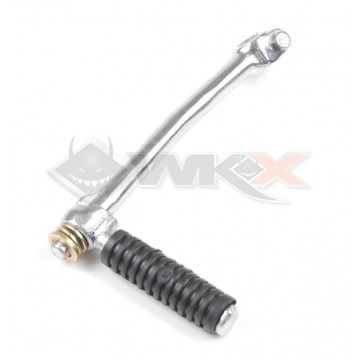Sur la plupart des modèles vendus sur le marché, on retrouve l’utilisation d’un kick pour lancer le moteur de la machine. Le démarrage au kick est certes fatiguant mais il est aussi beaucoup plus économique. En effet, le cout d’un kick de dirt bike est très nettement inférieur au cout d’un démarreur et d’une batterie pour l’alimenter. Ce kick de petit diamètre (13mm) se monte une grande variété de moteur différents. Ce modèle de kick de mini moto est repliable au niveau de la tête alors que sur certains modèles, il l’est au niveau de la base. Disponible dans de multiples couleurs, il est présenté ici en version d’origine chromé.